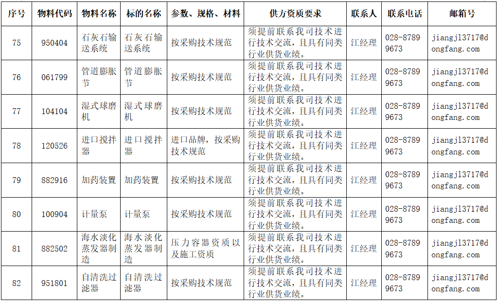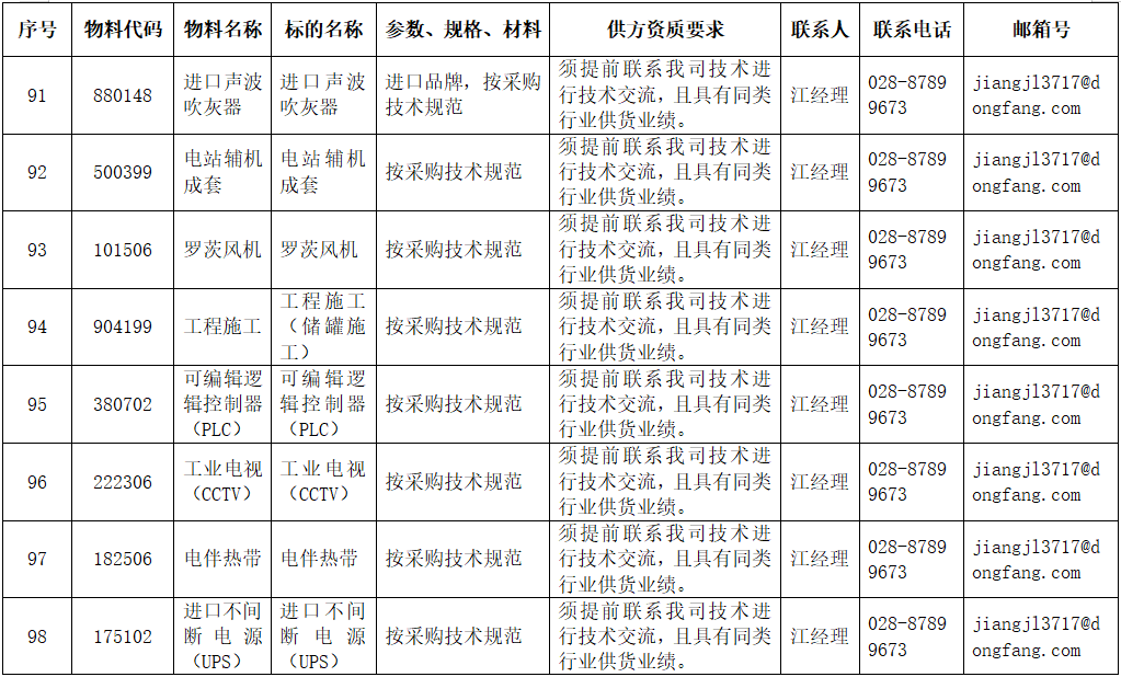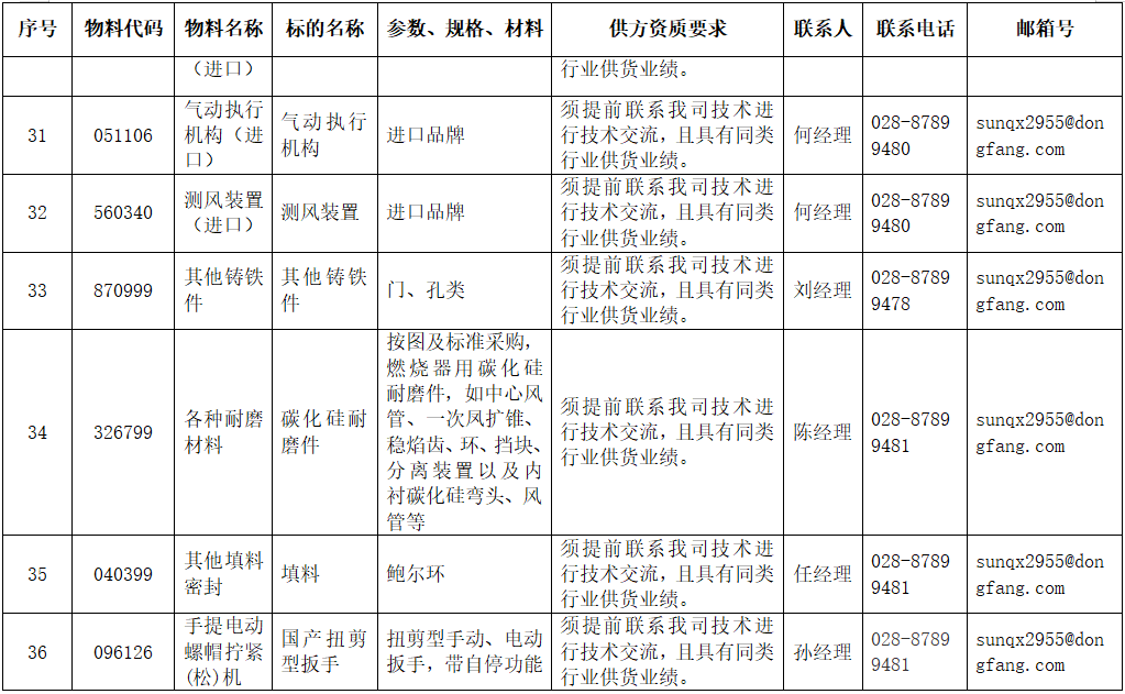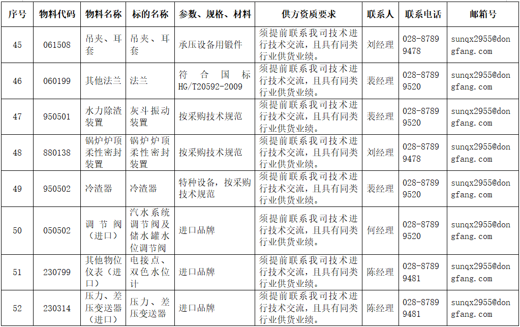 东方电气集团东方锅炉股份有限公司拟在全国范围内对附件清单中的物项进行公开寻源,欢迎有意向和符合条件的供应商积极参与报名。